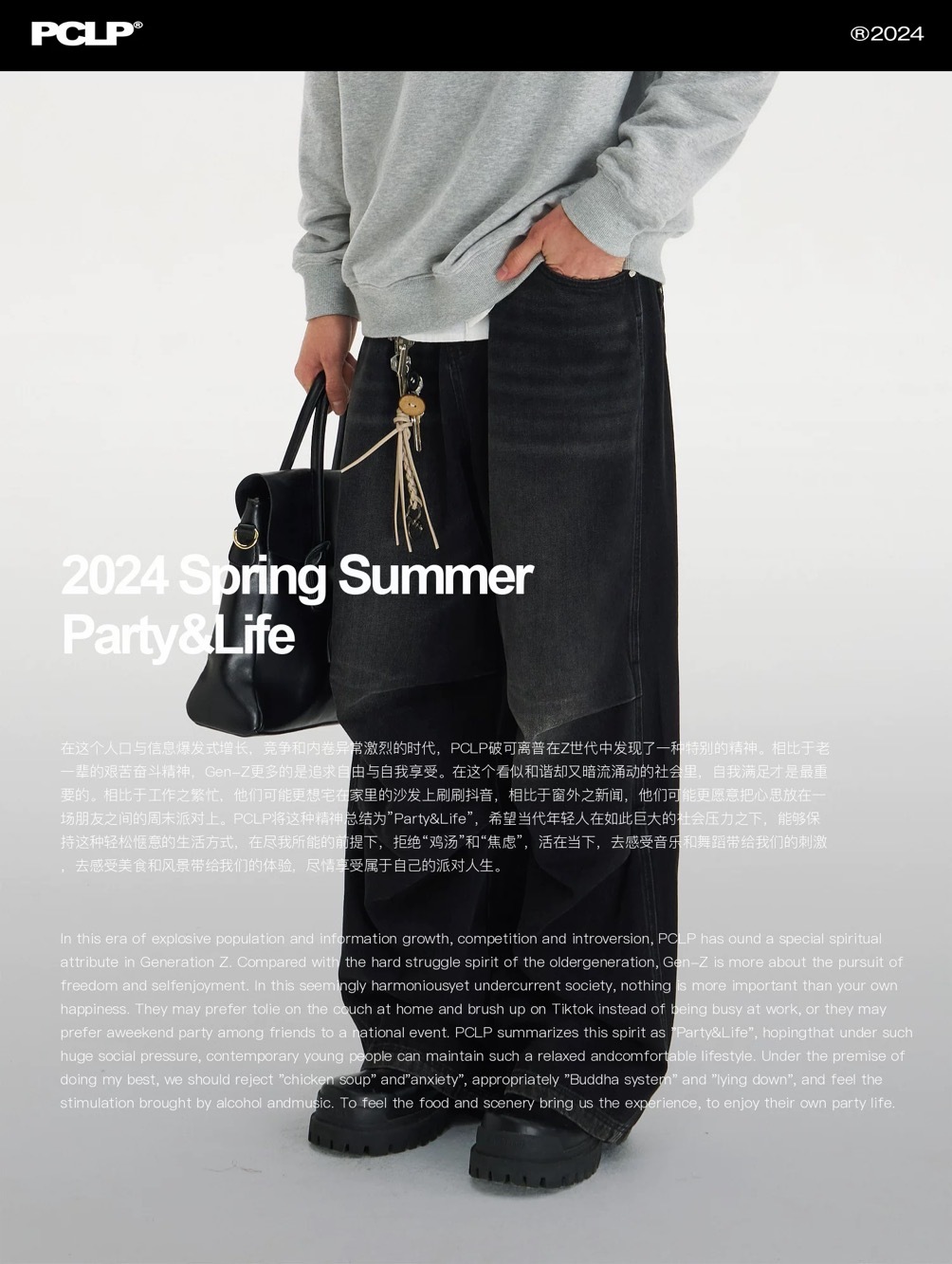 PCLP 水洗傘兵牛仔褲寬松闊腿直筒長褲